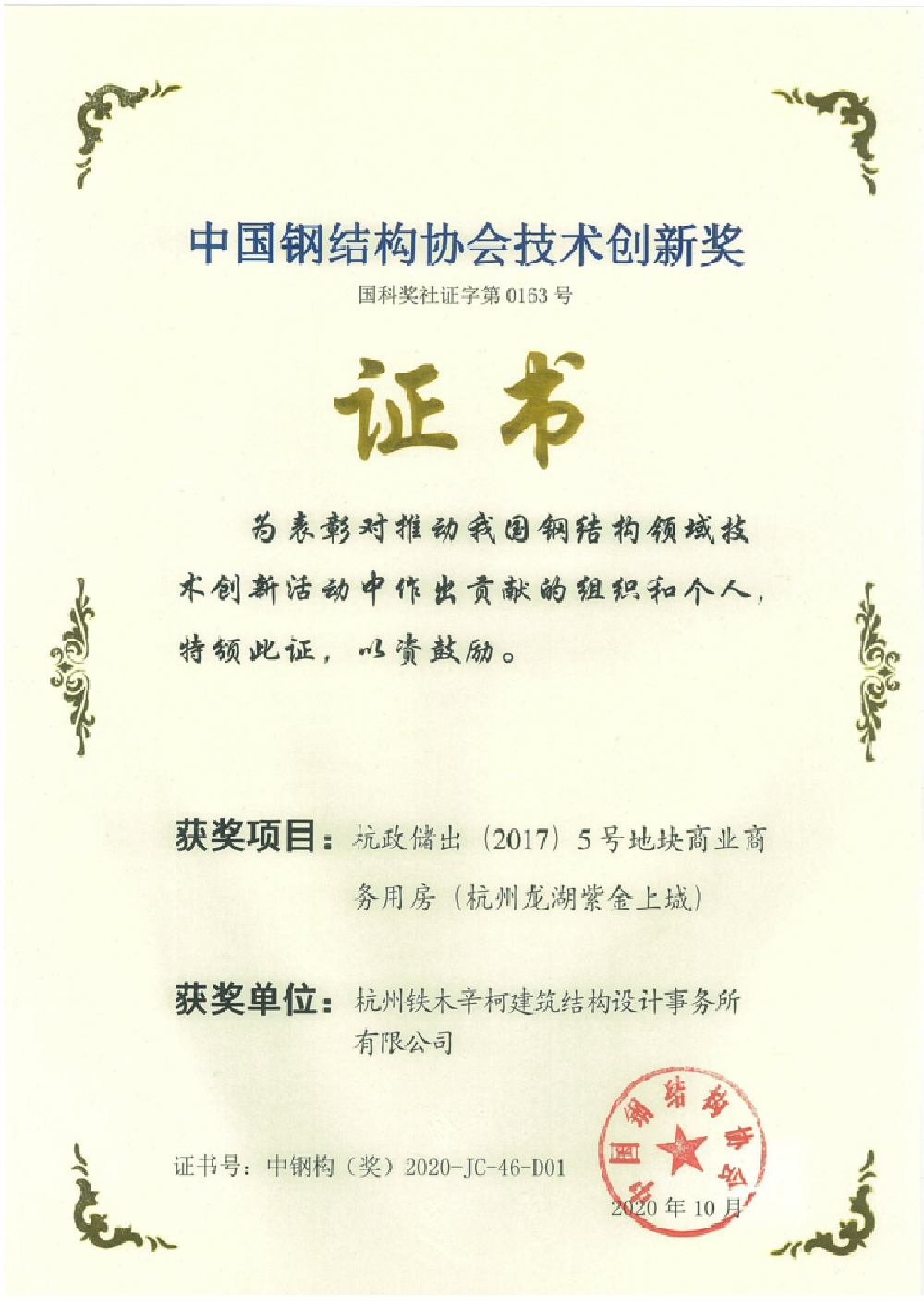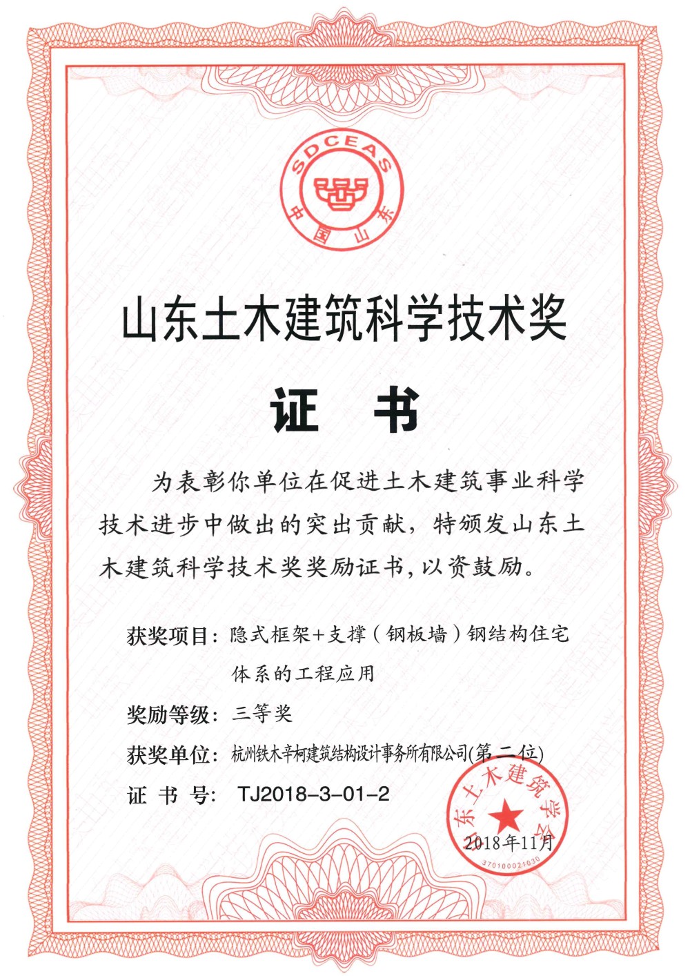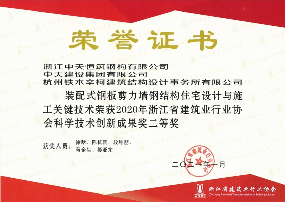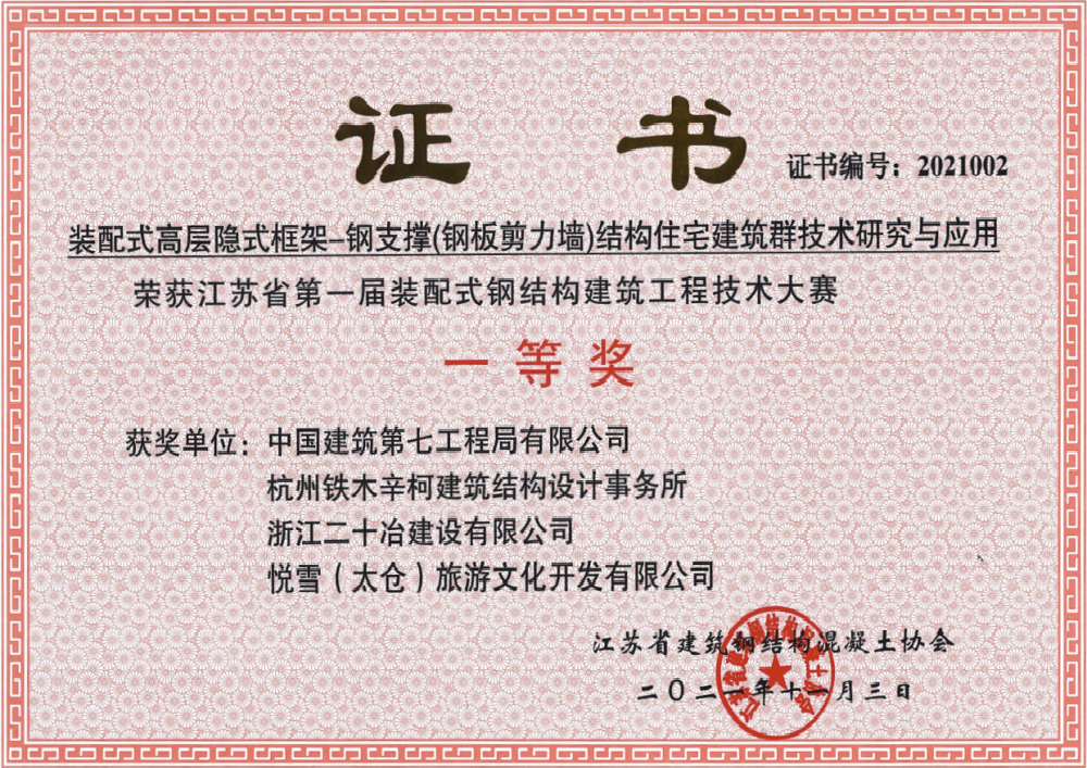 江蘇省第一屆裝配式鋼結構建筑工程技術大獎一等獎