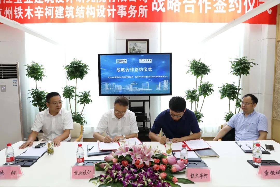 2020年8月25日,杭州鐵木辛柯建筑結構設計事務所與浙江寶業建筑設計研究院有限公司的戰略合作簽約儀式在寶業建筑設計研究院舉行。浙江大學童根樹教授、寶業建設集團董事及總經理徐鋼,寶業設計總經理張銘軍、總工程師褚航、總建筑師錢鈞、副院長兼裝配式研發中心主任李駿嶸,鐵木辛柯總經理景亭、副總經理陳杭濱、總工程師王彥超、總經理助理程志書出席了本次簽約儀式。簽約儀式由寶業設計總工褚航主持,綠色建筑協會及主管部門領導參與見證。