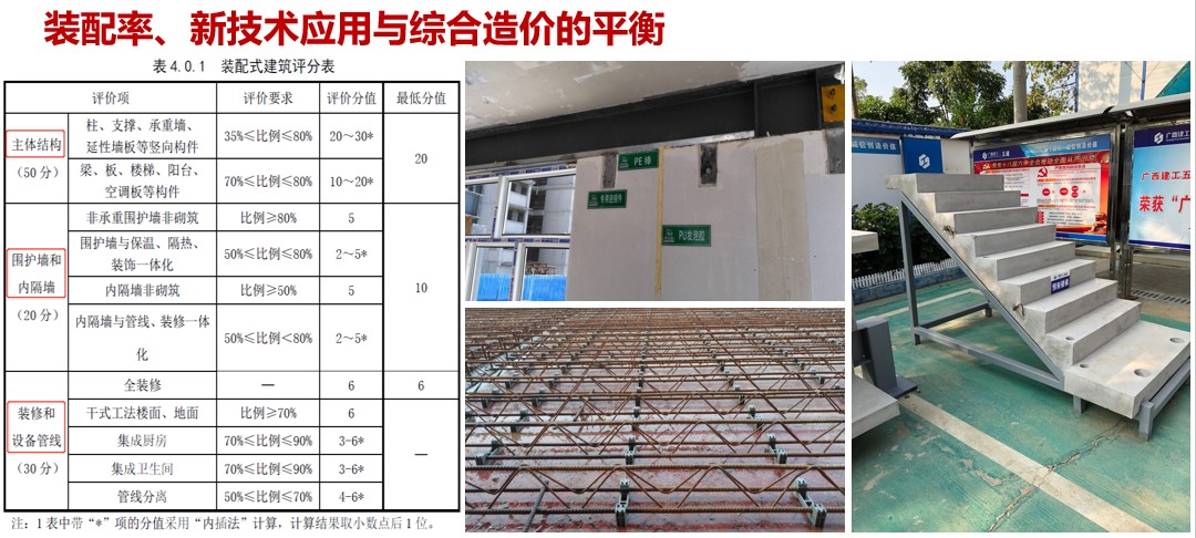 裝配率指標是目前政府推動裝配式建筑的一個抓手,國家有《裝配式建筑評價標準》GB51129-2017,各地也出臺了對應的省標。不同的標準,對裝配率的計算方法不同。由于技術創新不斷涌現,各類部品的構造也日新月異,這些新技術在應用中如何計算裝配率,各地工業化主管部門解釋也不相同。另外,新技術新產品的應用,在技術可靠性和成本方面,同時也帶來一定的不確定性,受不同產品廠家的影響較多。