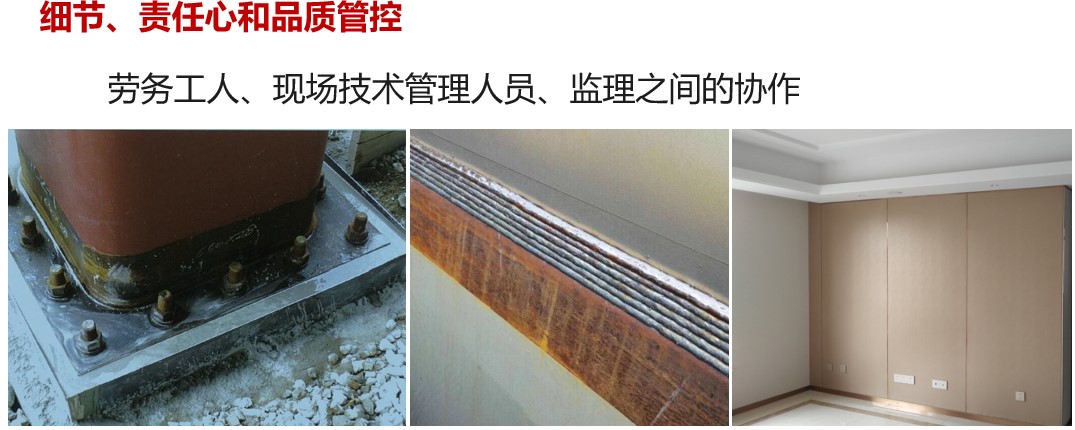 鋼結構住宅中,目前基本沒有沒解決的技術難題,最終的產品質量主要在細節的把控上。對樣板工程,可以不惜成本和工期,挑最好的老師傅慢慢的做精細,不出任何瑕疵。但是對于實際工程項目,用的是批量勞務隊伍,工人的技術水平可能參差不齊。在施工中,細節的把控一是靠工人的責任心,二是靠技術管理人員的品質管控。