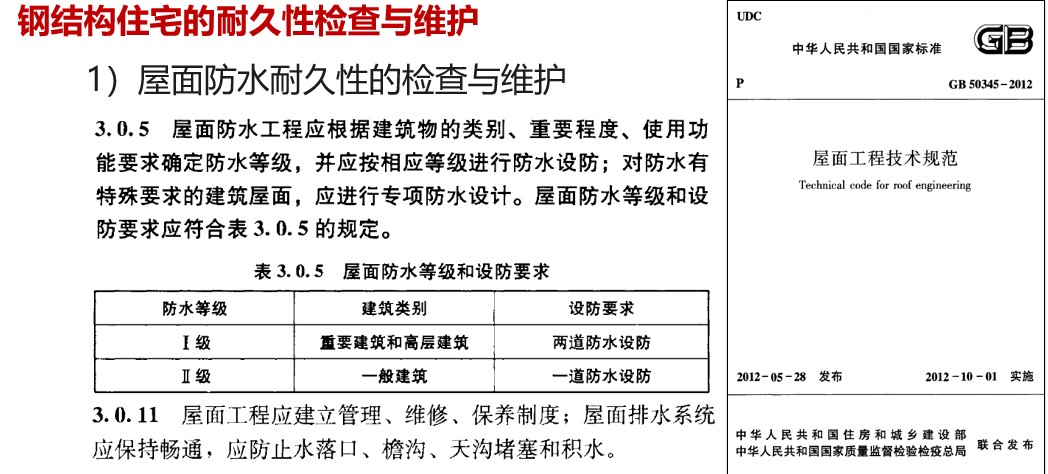 三是鋼結構住宅的耐久性檢查與維保。任何產品在服役期內,都面臨耐久性檢查與維護保養問題。傳統住宅也有檢查與維保問題。鋼結構住宅中,基礎、主體結構、主要墻體等,在全壽命周期內如果沒有經過較大的地震損壞,按現有規范質量要求,是不用經常檢查維保的。鋼結構住宅的耐久性檢查與維保主要有以下幾個方面。