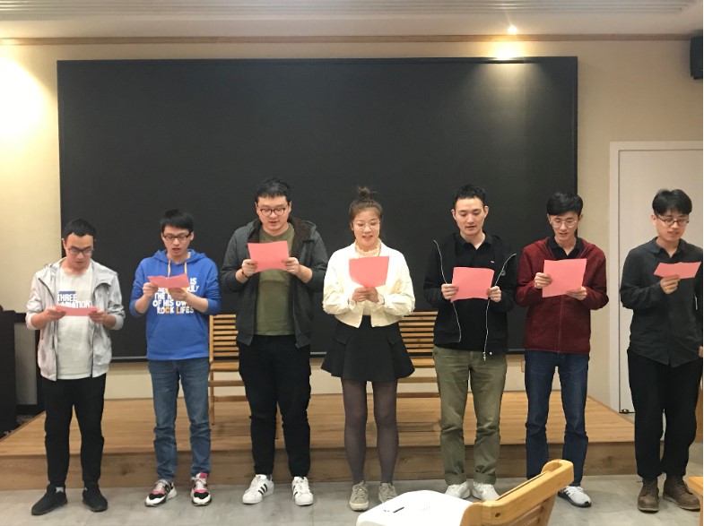 拜師儀式正式開始后,徒弟們上臺一起宣讀拜師帖。