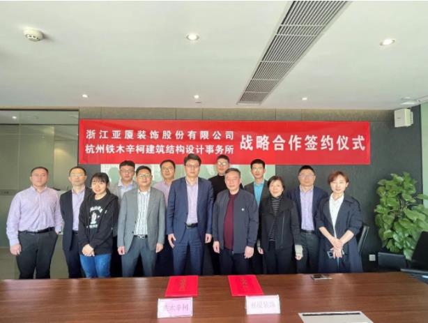 2022年3月11日上午,鐵木辛柯結構設計事務所與浙江亞廈裝飾股份有限公司(以下簡稱“亞廈裝飾”)簽署戰略合作協議。雙方以裝配式鋼結構住宅配套內裝修為切入點展開合作,充分發揮各自團隊的技術優勢,為客戶提供更加優質、便捷的產品和解決方案,共同提升雙方的核心競爭力。