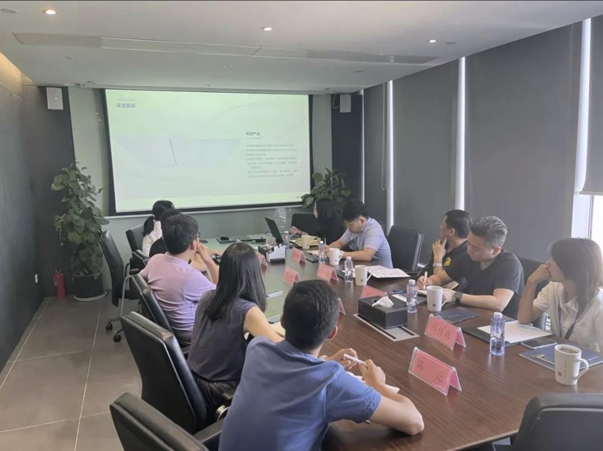 2022年8月12日上午,亞廈裝飾股份工業(yè)化總工程師周東珊、工業(yè)化產(chǎn)品總監(jiān)鄭曉峰、工業(yè)化總助兼材料部經(jīng)理彭偉一行到訪鐵木辛柯討論隱式框架裝配式裝修技術(shù)階段性成果,鐵木辛柯總經(jīng)理景亭、產(chǎn)品中心主任李天翔、裝配式建筑設(shè)計(jì)院總師姚志琳、副總工程師陳元、研究中心副主任應(yīng)姍姍陪同交流。