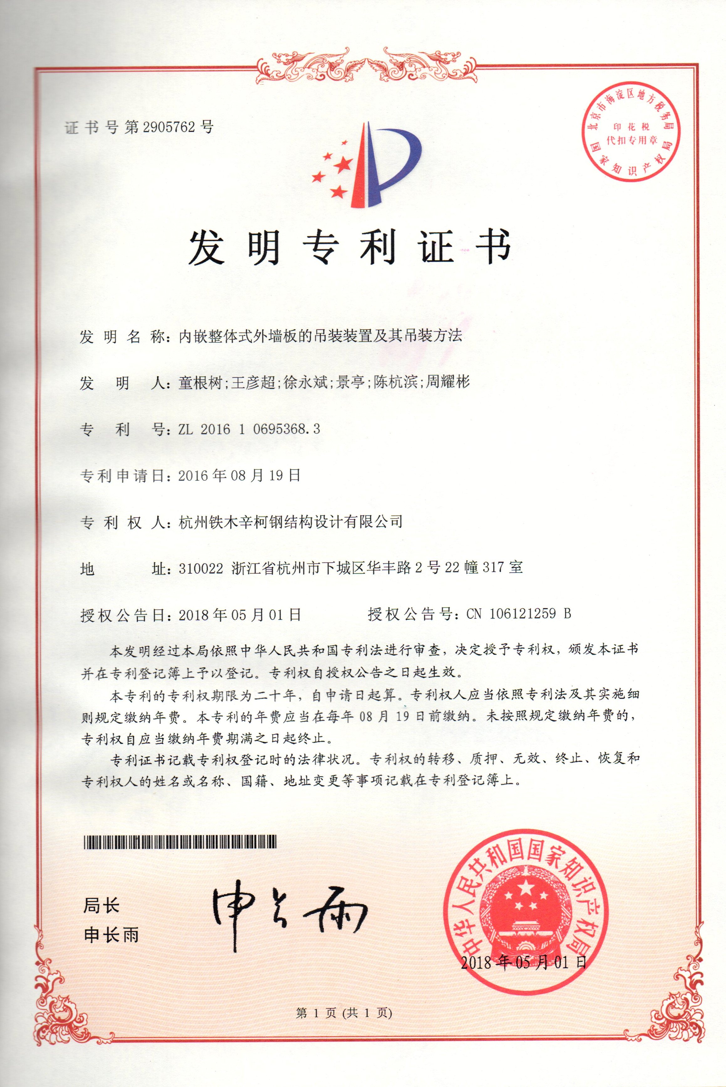 9內(nèi)嵌整體式外墻板的吊裝裝置及其吊裝方法