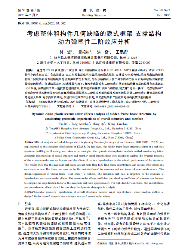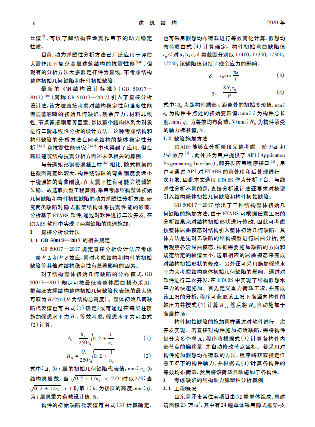 考慮整體和構件幾何缺陷的隱式框架-支撐結構動力彈塑性二階效應分析[全文]